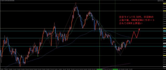 買い:4時間足ライン110.50円をしっかり上抜けN字上昇